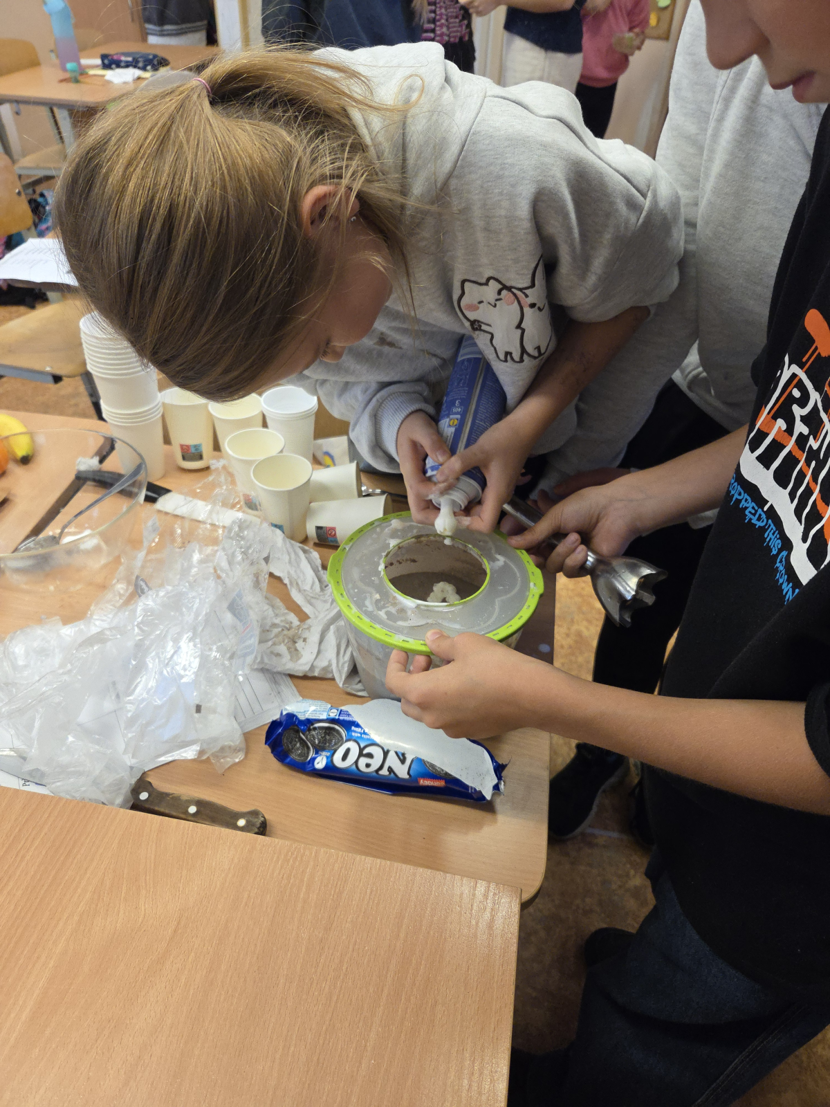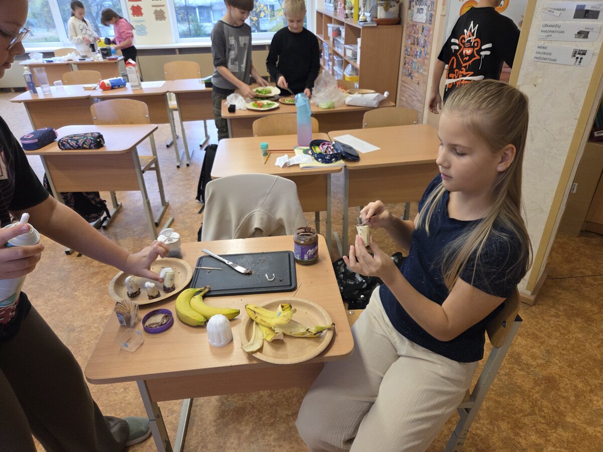 Spalio 24 d. per technologijų pamoką 4 c klasės mokiniai gamino kulinarinius šedevrus. Iš anksto susiradę receptus ir atsinešę reikiamus produktus, vaikai klasėje gamino įvairius skanėstus, mokėsi kulinarinių įgūdžių ir kūrybiškai pritaikė savo idėjas. Pamokos metu jie ne tik bendravo ir dalijosi patarimais, bet ir mokėsi planuoti darbą, laikytis higienos taisyklių bei džiaugėsi savo sukurtų patiekalų rezultatais. Ragaujant ir vertinant vieni kitų darbus, ketvirtokai patyrė smagią ir įdomią patirtį, kuri ugdo atsakomybę, kūrybiškumą ir bendradarbiavimo įgūdžius.