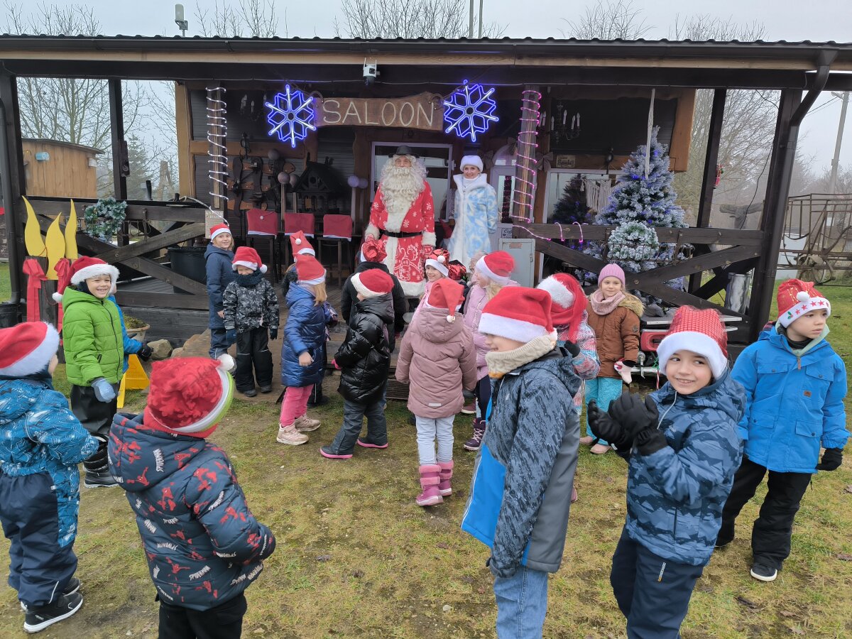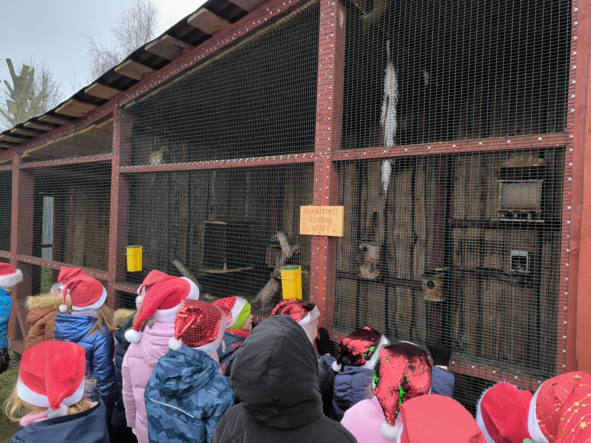 1b klasės mokiniai su padėjėja ir klasės vadove susitiko su Kalėdų seneliu, apžiūrėjo jo rezidenciją.