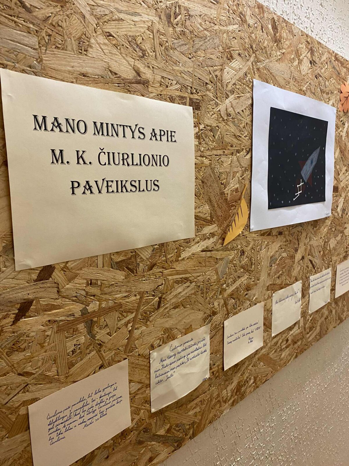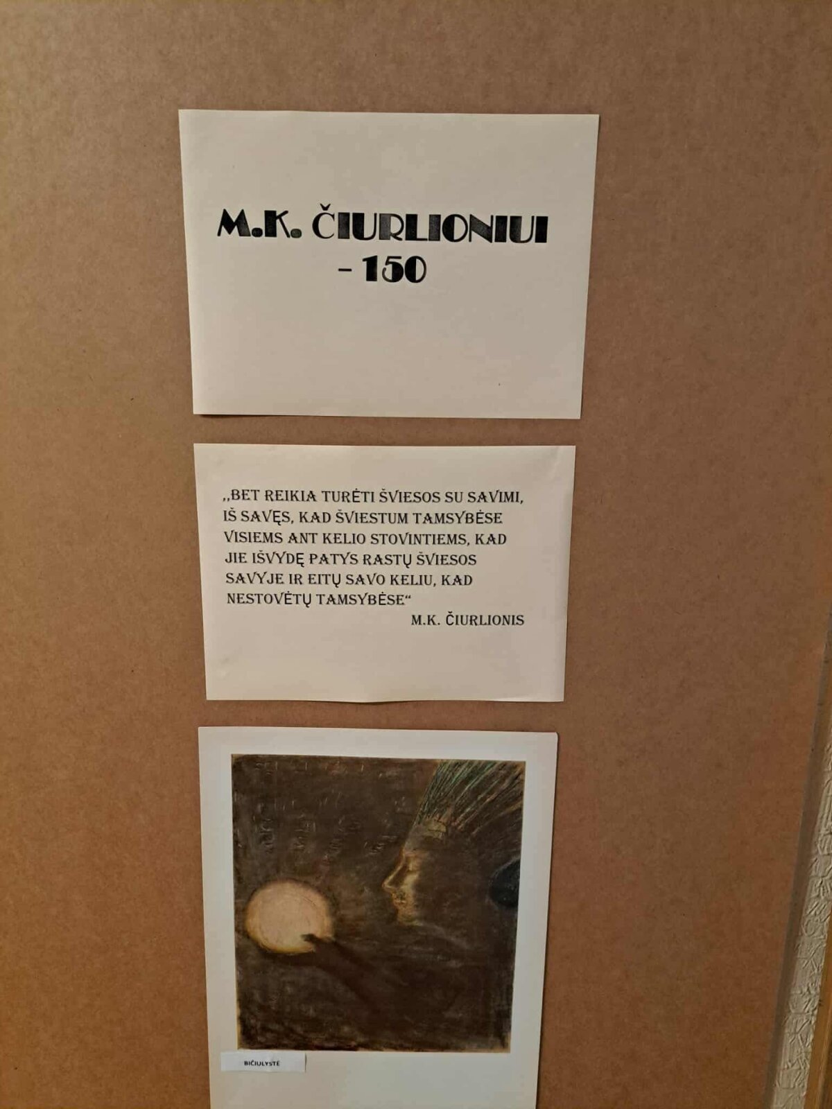 Medeinos pradinėje mokykloje surengta paroda 150 - osioms M. K. Čiurlionio metinėms paminėti.