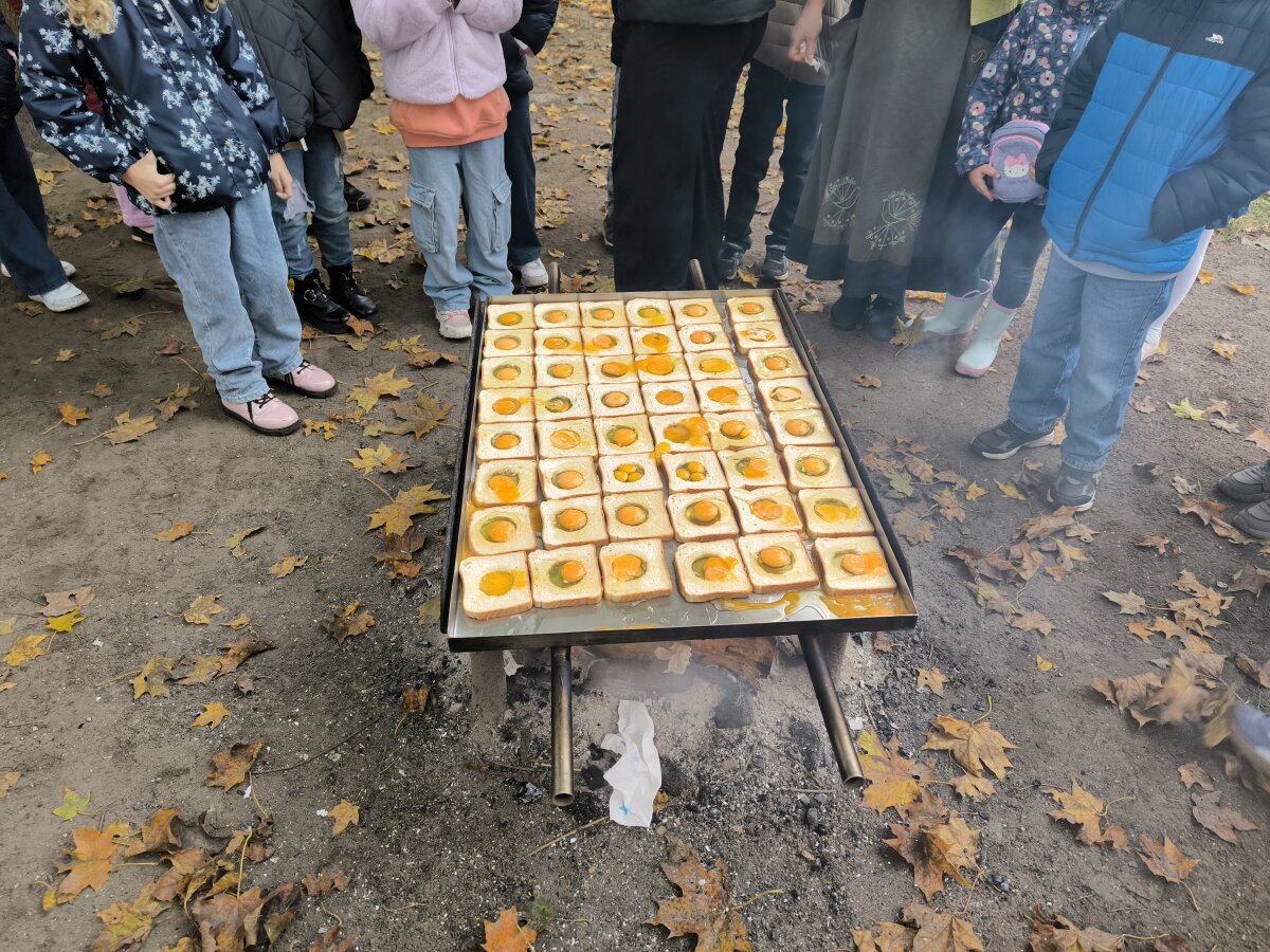 Apsilankę susipažinome su ,,Paukščių kaimo’’ sparnuočiais, vaišinomės milžiniškoje keptuvėje ant laužo ugnies iškepta kiaušiniene iš įvairių paukščių kiaušinių ir ką tik išvirta kvapnia žolelių arbata.